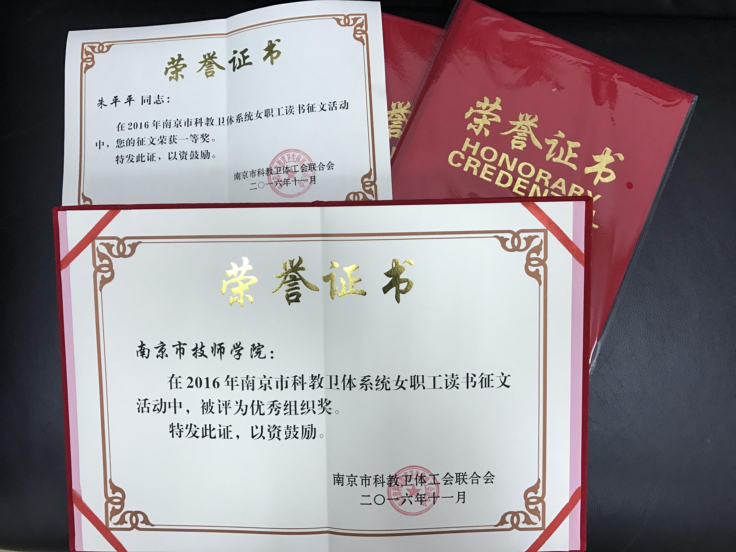 为深入贯彻落实党的十八大以及党的十八届三中、四中、五中全会精神,南京市科教卫体工会联合会在全系统广泛开展了主题为“分享阅读、品味人生”的女职工读书征文活动。我院工会积极响应,组织女教工踊跃参与,并认真组织选拔高质量美文上报上级工会。经综合评审,我院朱平平老师荣获一等奖,鲍咏梅、王海燕老师获得二等奖,徐玉平、洪可迪、俞彤恩老师获得三等奖。