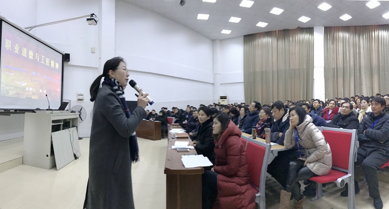 1月31日上午,我院邀请市委党校戴芳教授上了主题为“弘扬职业道德和工匠精神”的师德师风专题讲座。讲座由张金梅书记主持,学院全体院领导、中层干部和专兼任教师参加此次讲座。