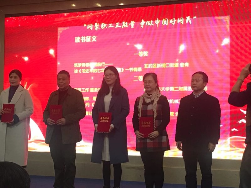 2018年市总工会联合市委网信办首次开展“网聚职工正能量 争做中国好网民”主题活动,主要内容是“五个一”网络作品征集和展示:一部公益广告(视频和海报),一幅“画面故事”,一篇“网络好职工”读书征文,一段“网言网语”,一个“我为南京发展作贡献”金点子。我院机械系教师朱平平的“我遇到你,是最美好的开始--敬一丹《我遇到你》读后感”荣获征文作品二等奖。