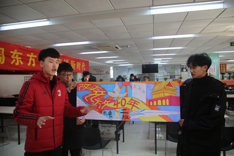 来自各系的共25组参赛队沐浴着经典歌曲《春天的故事》,在宽40厘米长121.8厘米的画纸上谱写了40年来中国社会发展的历史变革,比赛现场气氛热烈,参赛选手情绪高昂,参赛作品形式多样,描绘内容丰富有趣。