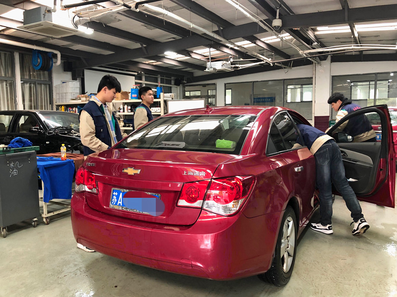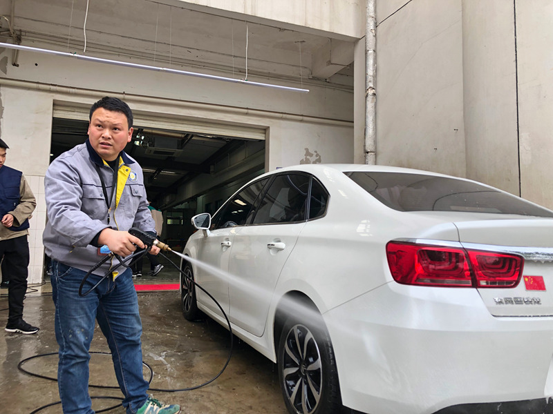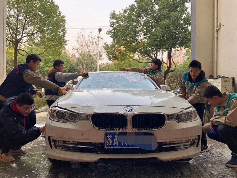 同学们细心地完成着洗车、擦车、校正胎压、更换三滤等一系列服务程序,将专业知识和实践操作紧密结合。大家分工明确、干劲十足,以饱满的热情和真诚的笑容为每一辆车做好服务。