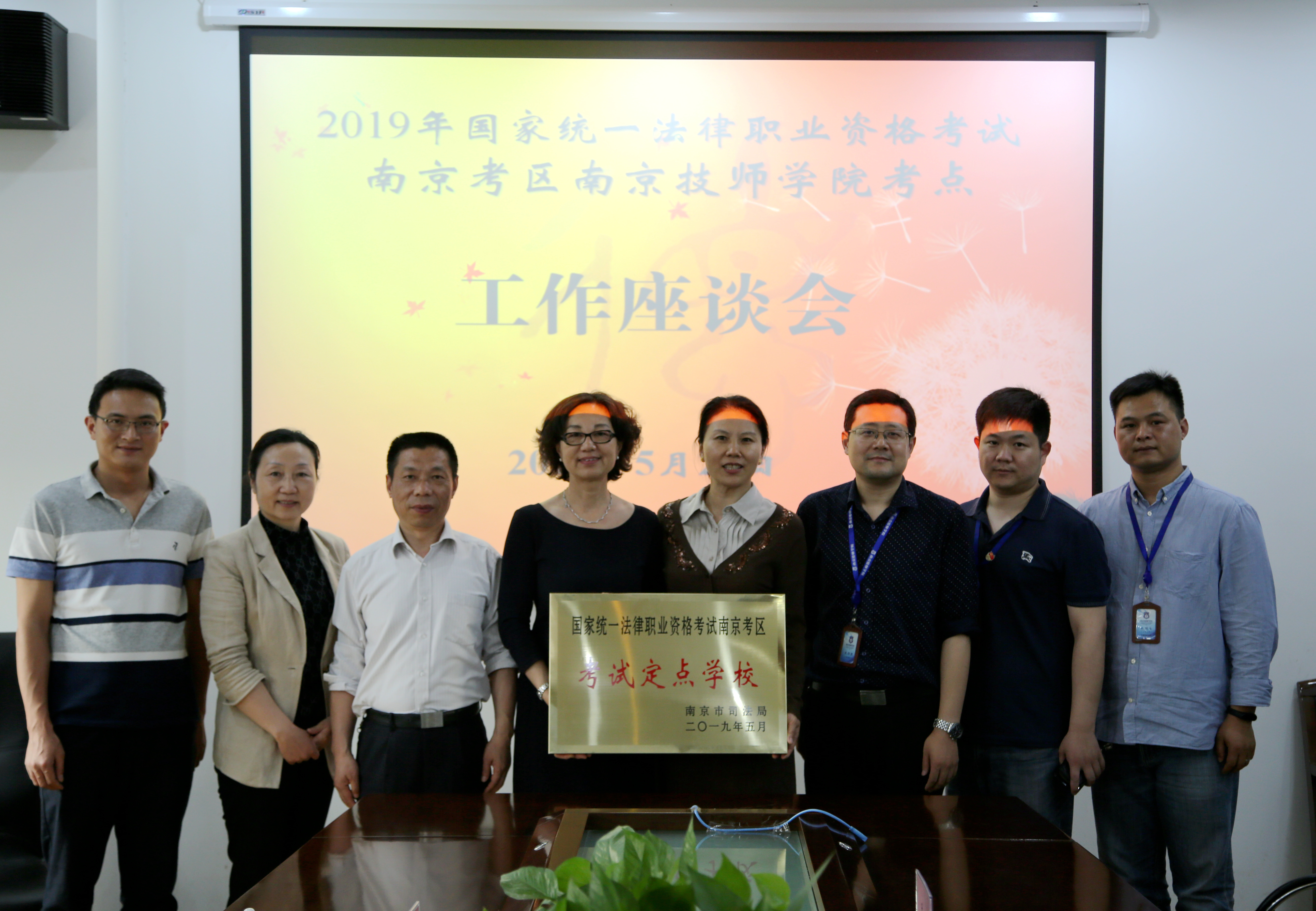 5月21日,2019年国家统一法律职业资格考试南京考区万搏在线网站考点工作座谈会在我院召开。南京市司法局巡视员苏郑、司法考试办公室处长温金富、我院党委书记张金梅、副院长朱胜强及相关负责同志参加会议。