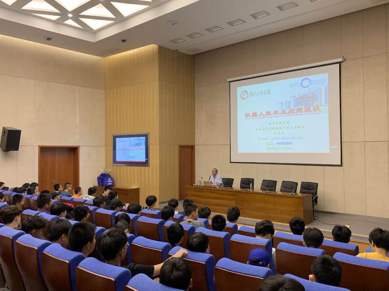 2019年5月25日上午,2019年度南京市高技能人才研修班开班仪式在我院举行。本次高研班邀请到南京工程学院汪木兰教授、南京熊猫电子装备有限公司市场部部长孙强、南京旭上数控技术有限公司高级工程师吴乐平、万搏在线网站高级技师陈挺等4位专家为本次高研班进行现代机器人技术应用的专业讲座及技术指导。