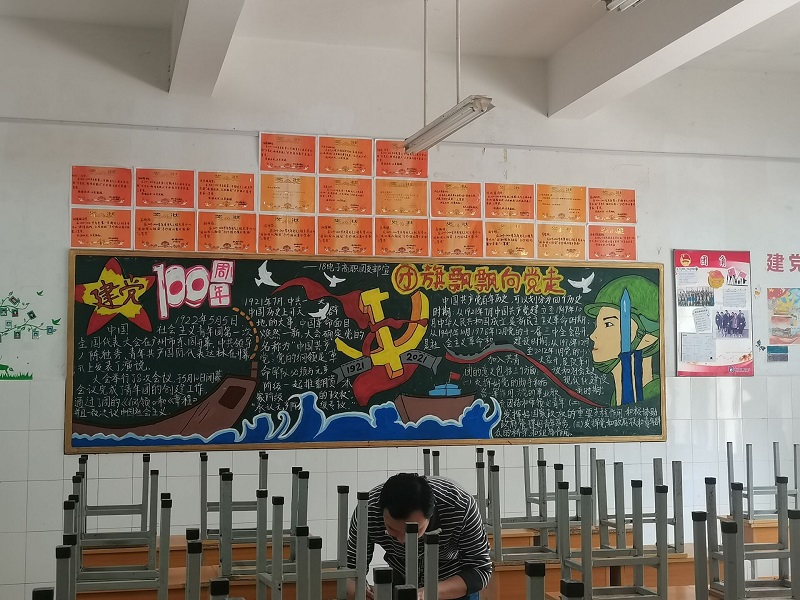 全校147个班级教室参加了此次教室文化评比。各班级积极响应号召,参照学工处制定的评分标准,围绕班级卫生、黑板报以及班级文化这三个方面,迅速行动,积极准备。通过1个多月的初赛和决赛,各个班级教室面貌焕然一新。一间间宽敞明亮的教室,一面面班级文化墙熠熠生辉,到处书写着建党百年波澜壮阔的光辉历程,诠释着历久弥坚的百年初心,洋溢着迎接建党100周年的喜庆氛围。