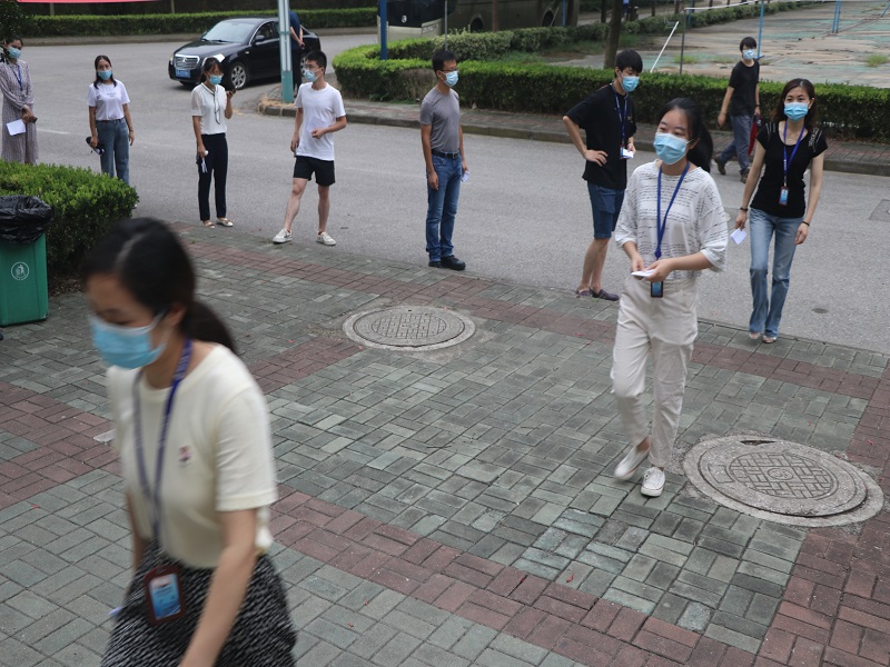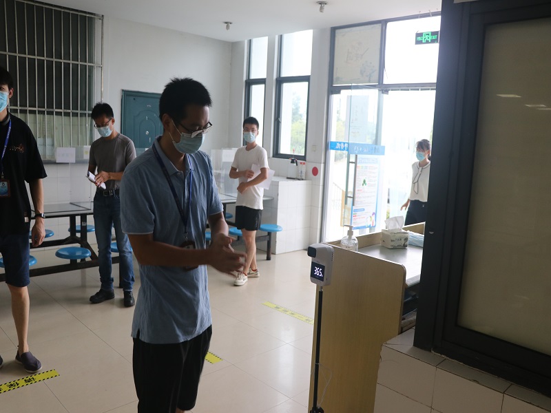 井然有序中也出现了突发事件。一位学生在宿舍突感不适,有发热、乏力、咳嗽症状,自测体温超过37.3℃,立即向宿管员报告。宿管员接到报告后,通知该宿舍人员不得外出,并指引学生转移到宿舍门口的临时观察点,并立即电话向值班人员报告。随后,值班人员通知值班校医快速赶到宿舍门口临时观察点对该学生进行相关处置,经过测量体温、询问有关情况后,学生的体温仍然异常,由学院派车送医院处理。同时,防疫组、安保组到现场维持秩序,划定警戒区域,宿管员着隔离防护服对楼栋和宿舍进行了消毒。发热的学生经医院核酸检测为阴性排除新冠肺炎后,送回学院位于教师公寓的集中隔离区,继续做好观察工作,整个体温异常学生的处置工作显得井然有序。
