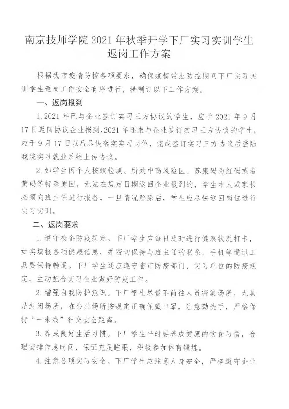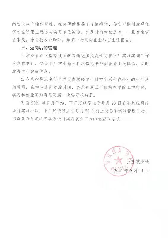 万搏在线网站2021年秋季开学下厂实习实训学生返岗工作方案