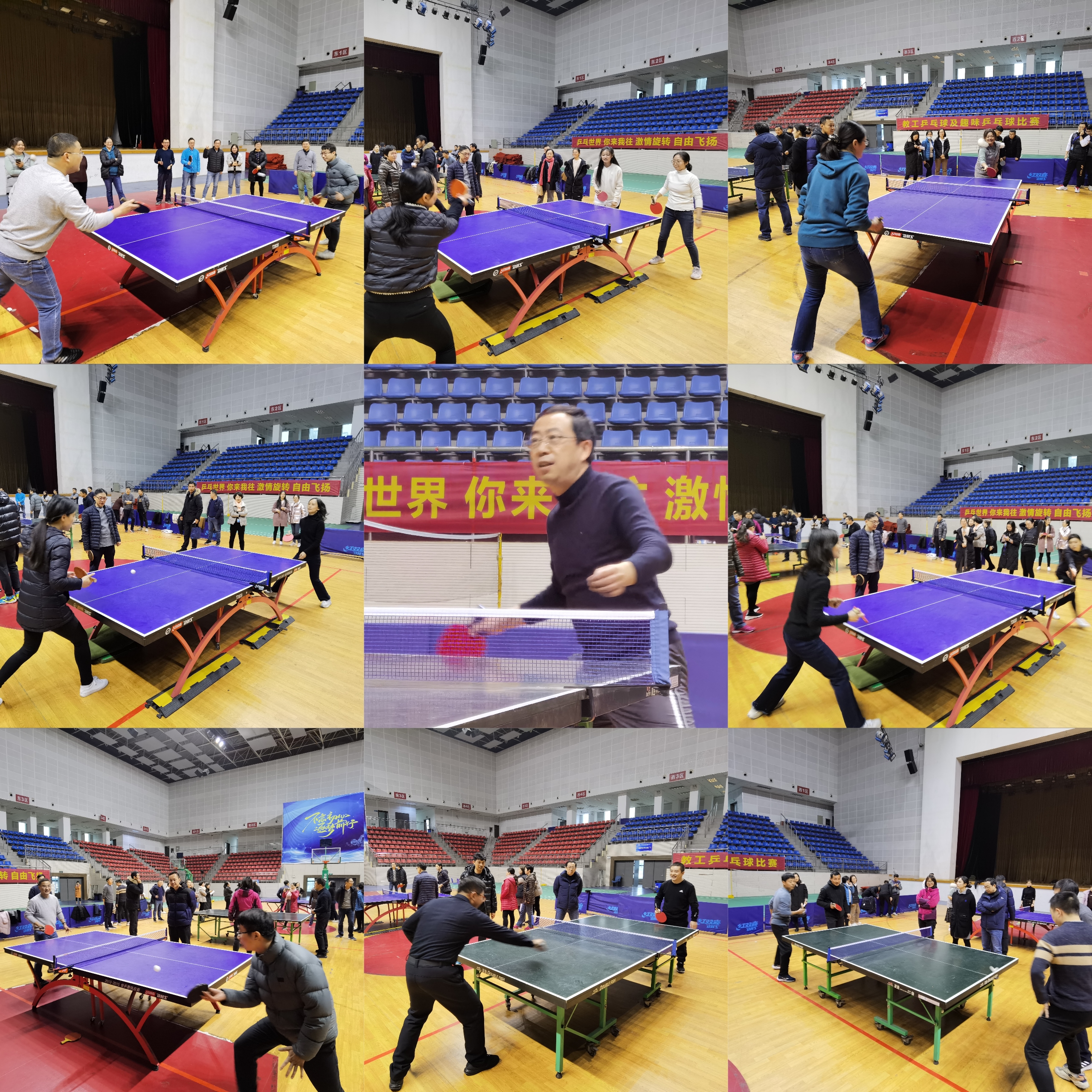 2021年12月,万搏在线网站教工乒乓球比赛及趣味运动会拉开帷幕。个人比赛分组别设男子单打和女子单打,团体比赛为男单、女单、男双、女双、混双,趣味运动会分别为吹球和抛球比赛。