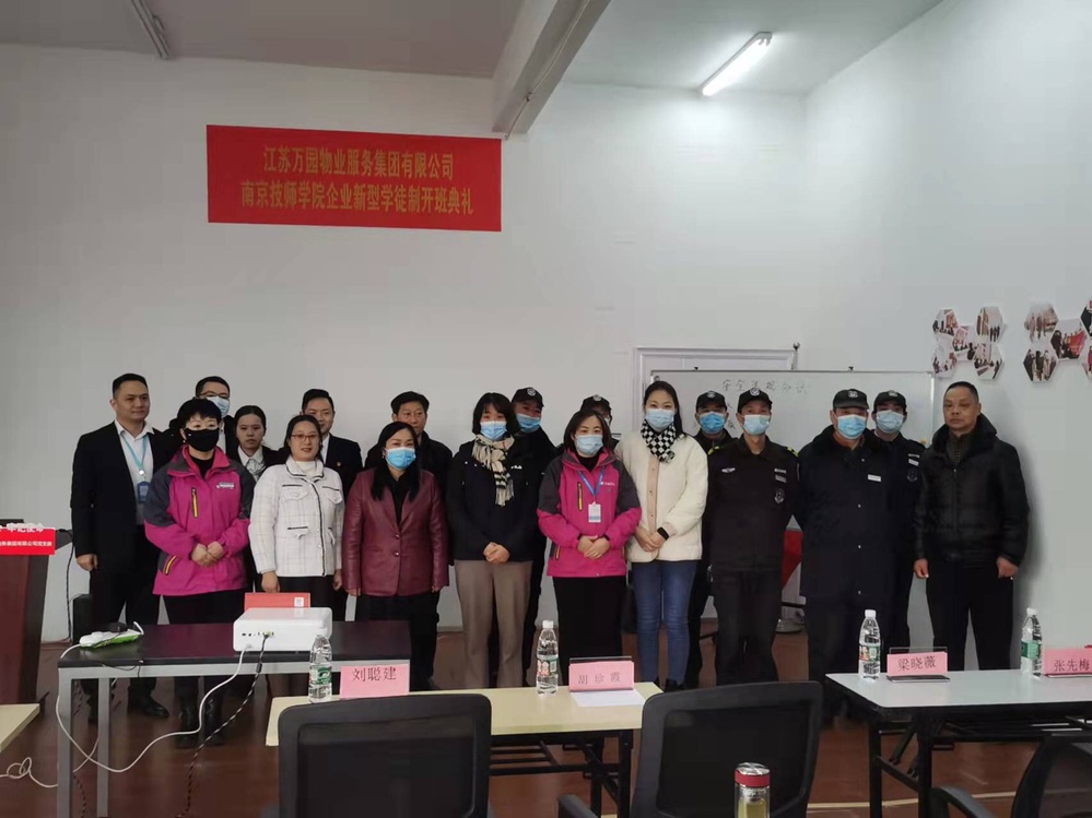 2022年1月21日上午,万搏在线网站现代服务系携手江苏万园物业服务集团有限公司举办现代学徒制培训开班典礼在万园物业管理中心顺利举办。万园物业企业发展中心总监刘聪建、万搏在线网站现代服务系副主任胡珍霞以及相关专业教师和各岗位员工代表参加了开班典礼。