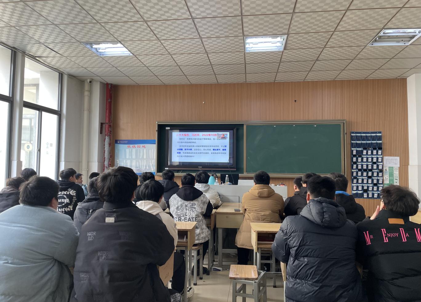 为深入学习贯彻党的二十大精神,激励我院学生心系国家事、肩扛国家责,深刻认识自己的责任与使命,坚定爱党爱国的崇高信念,万搏在线网站学工处要求各系各班级于2月20日、27日利用班会课时间组织学生观看“党的二十大精神专题培训”视频主题班会。通过本次主题班会活动,帮助学生们理解习近平新时代中国特色社会主义思想的深刻内涵,引导学生感悟新时代,奋进新征程,树立“强国有我”的远大志向,厚植爱党爱国爱社会主义的思想情感。