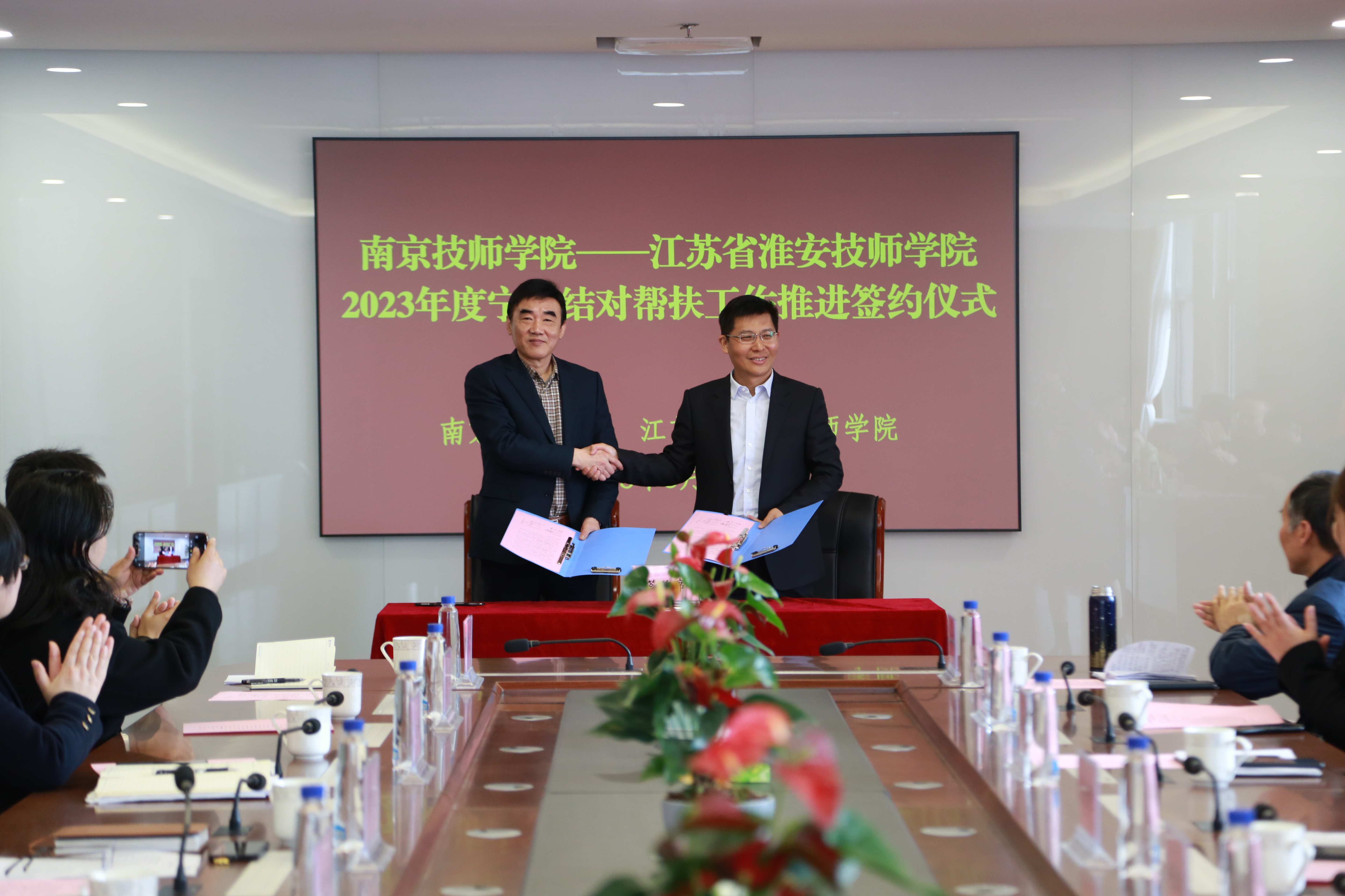 交流研讨会上,张金梅书记致欢迎辞,侯放院长介绍了学院办学情况和发展改革的成就经验。杨恒忠书记表达了对学院承接宁淮帮扶的谢意以及淮安技师学院借此将大力加强内涵建设意愿。两校在会上签订了“万搏在线网站党委—江苏省淮安技师学院党委党建共建协议”和“万搏在线网站—江苏省淮安技师学院2023年度宁淮结对帮扶工作推进协议”。双方将在新的起点上形成更紧密高效的合作,加强学习交流。将按照协议内容,充分发挥各自办学优势,共同促进高质量发展。