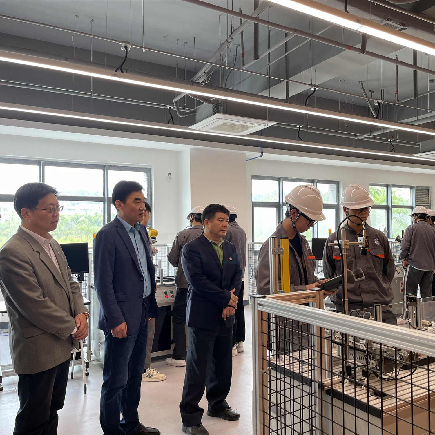 座谈会前,考察组成员先后参观了新能汽车、水处理、移动机器人等实训基地和智能制造生产线等,在调研考察的过程中,考察的一行成员对学院的实训项目进行了客观、深入、全面的了解。特别是对污水处理项目表示了高度肯定,智能制造生产线实训基地赢得了考察队伍的一致好评。