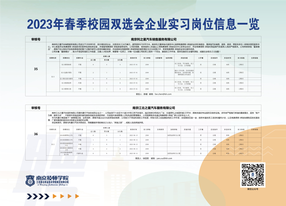 2023年春夏季校园双选会企业实习岗位信息一览