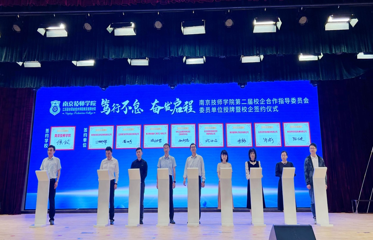 在成立大会致辞中,张书记指出,本次大会既是对前期校政企合作的总结回顾,又是对巩固良好合作关系、深化合作的展望交流,希望以此次授牌暨签约仪式作为校企合作的新起点,共同为高质量人才培养做出新贡献。委员会成立大会现场,侯院长代表学院与16家企业集中签订了校企合作协议,19家政府部门、高校、行业协会及优质企业成为学院的委员单位,40位专家进入学院专家库,新成立的校企合作指导委员会校外委员及专家库将具体指导学院专业建设和人才培养的研究、指导、咨询、服务等工作,推进产学研一体化建设,助力形成全方位多维度的育人模式,进一步提升服务产业能力和水平。