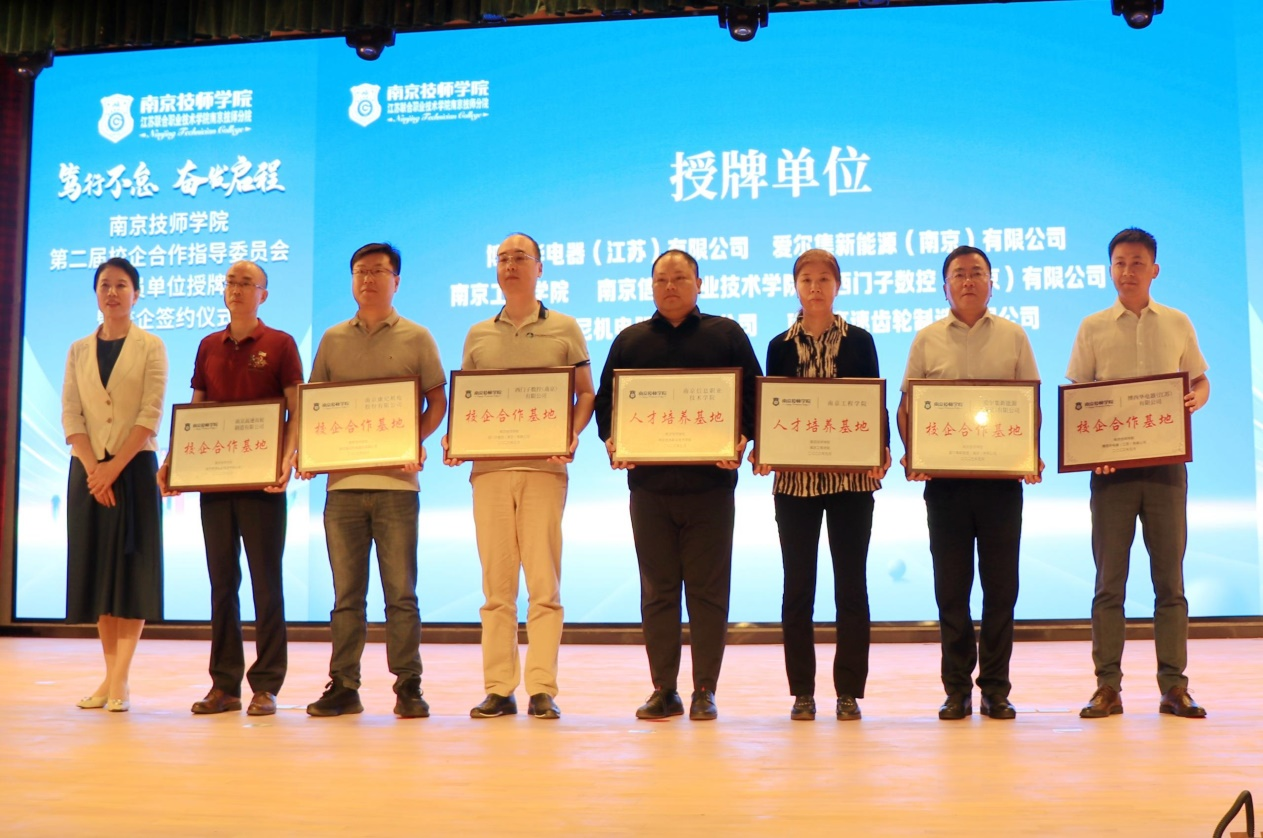会上,南京市栖霞区人力资源和社会保障局副局长梅华表示,深化校企合作,培养应用型技能人才是一个长远的系统工程,任重而道远,需要校政企通力合作,砥砺前行,共同为南京市现代化典范城市建设输送更多优秀高技能人才。博西华电器(江苏)有限公司培训中心主任赵毅、南京萨特科技发展有限公司人力资源经理陈健也相继就校企合作共育高技能人才做交流发言。