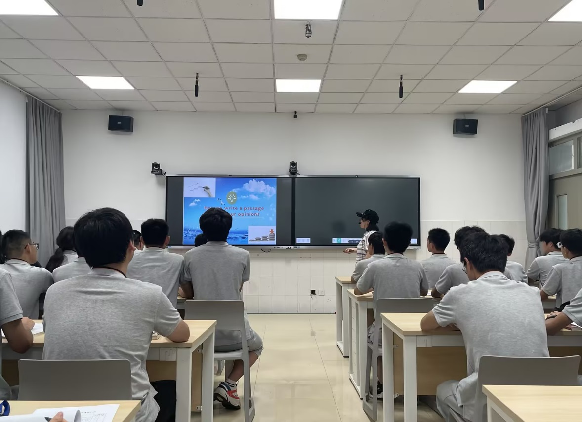 本次公开课授课内容为“How to write a passage on your opinions ?”。基础课部王双枝老师精心备课,教学过程中多媒体运用娴熟,教学环节流畅清晰,以分组讨论的形式引导学生合作探究,用任务驱动的方式启发学生探讨穿校服的利弊。整个教学过程充分发挥了学生的主观能动性,做到了以学生为主体,以教师为主导,促进了良好的师生互动关系,取得了良好的教学效果。