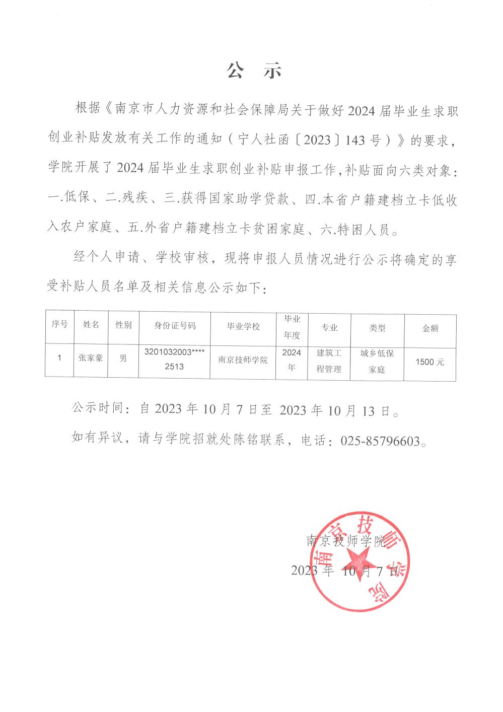 2024届毕业生求职创业补贴申报公示