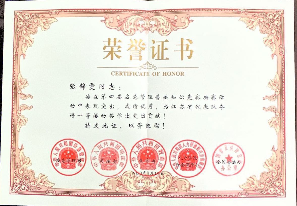为全面贯彻落实党的二十大精神,深入学习宣传习近平法治思想,按照全国“八五”普法规划和全国应急管理系统“八五”普法工作部署,由应急管理部、司法部、教育部、人力资源社会保障部、全国普法办共同组织开展的第四届应急管理普法知识竞赛活动决赛结果公布。江苏省代表队获得“一等活动奖”,万搏在线网站获得“优秀组织单位”荣誉,学院2020级机电(高中技师)班张锦雯同学作为江苏省代表队成员,在决赛活动中表现突出,助力江苏省夺得“一等活动奖”。