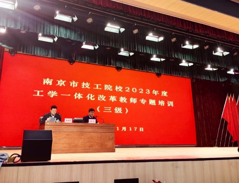 为积极推进工学一体化技能人才培养模式,建设一支高素质、专业化、创新型的技工院校工学一体化教师队伍,11月17日至20日,万搏在线网站顺利举办了南京市技工院校2023年度工学一体化改革教师(三级)专题培训班。来自全市10所技工院校的80名骨干教师参加了本次培训。副院长朱胜强、赵杰出席了开班仪式。