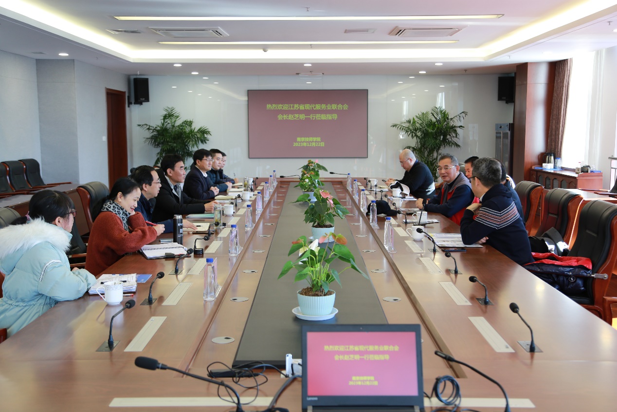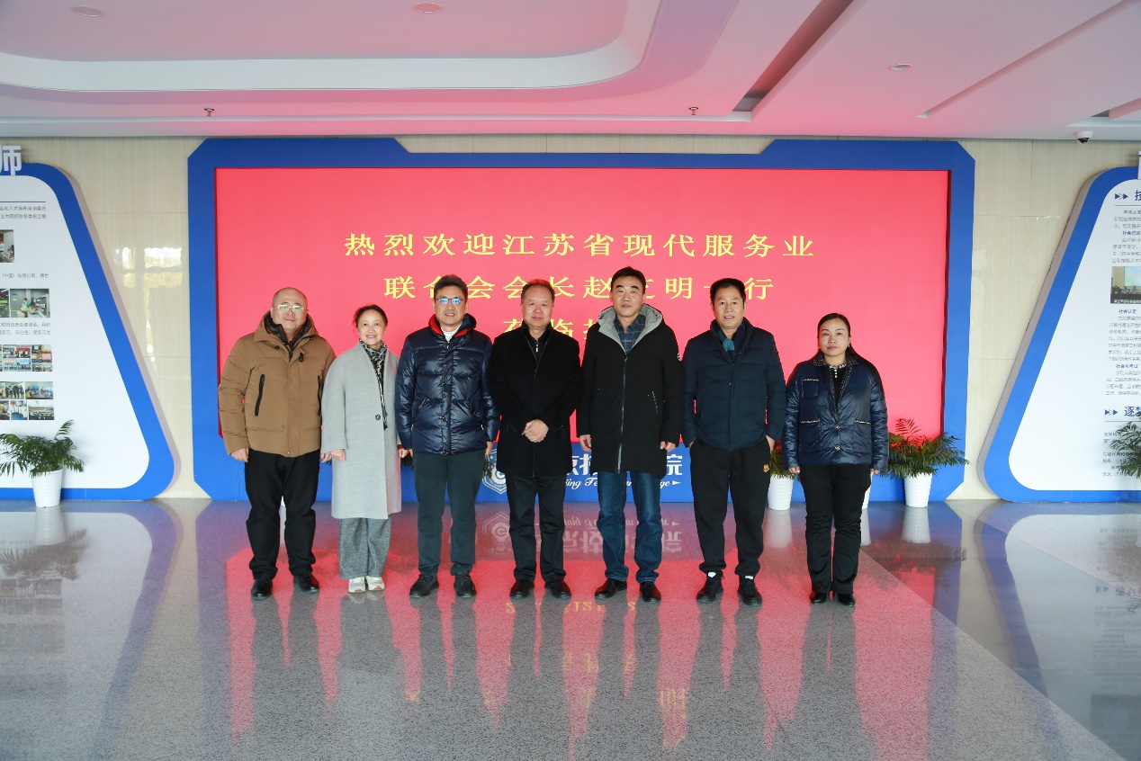 2023年12月22日,江苏省现代服务业联合会会长赵芝明、秘书长秦少华、副秘书长田宁中、王友龙等一行五人来我校考察交流。院长侯放,副院长赵杰、徐建华,现代服务系、党政办公室负责人陪同考察并参加了座谈交流。