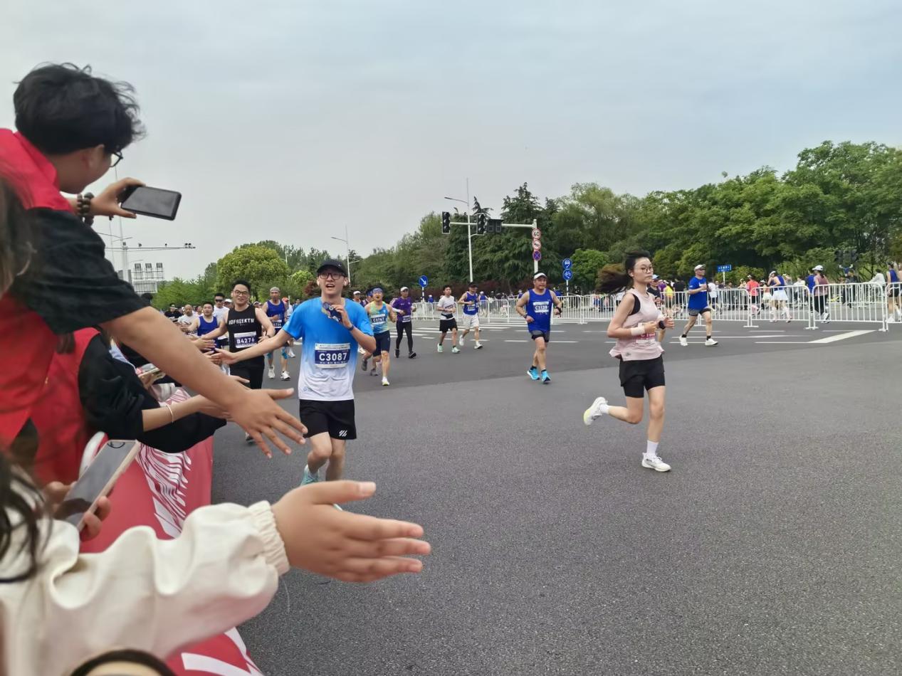 4月11日上午,2024南京仙林半程马拉松鸣枪开跑,来自万搏在线网站的90名学生志愿者们,以最饱满的姿态、最昂扬的精神为选手们加油鼓劲。
