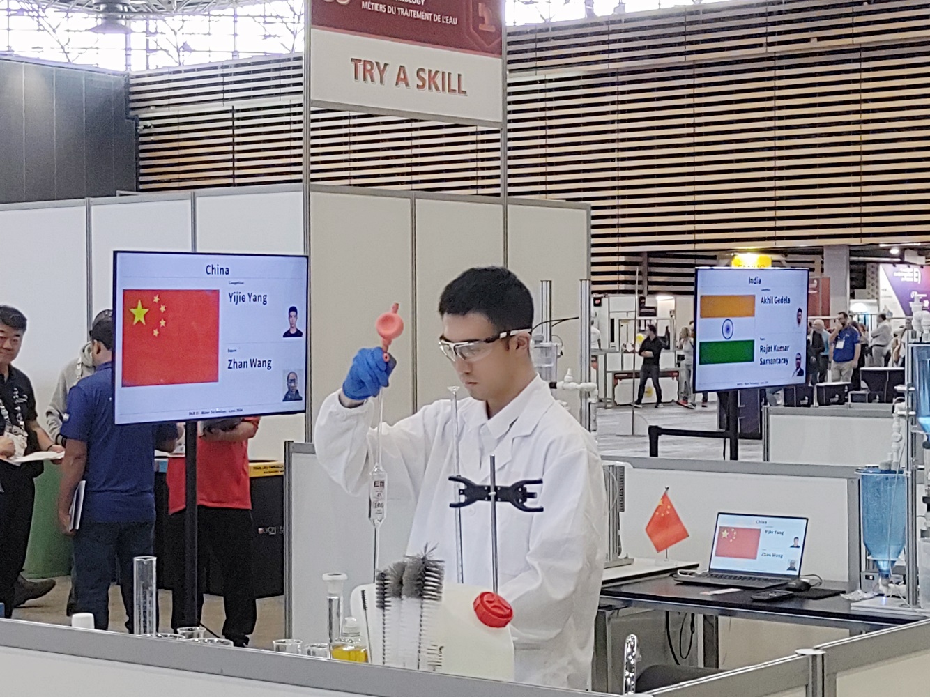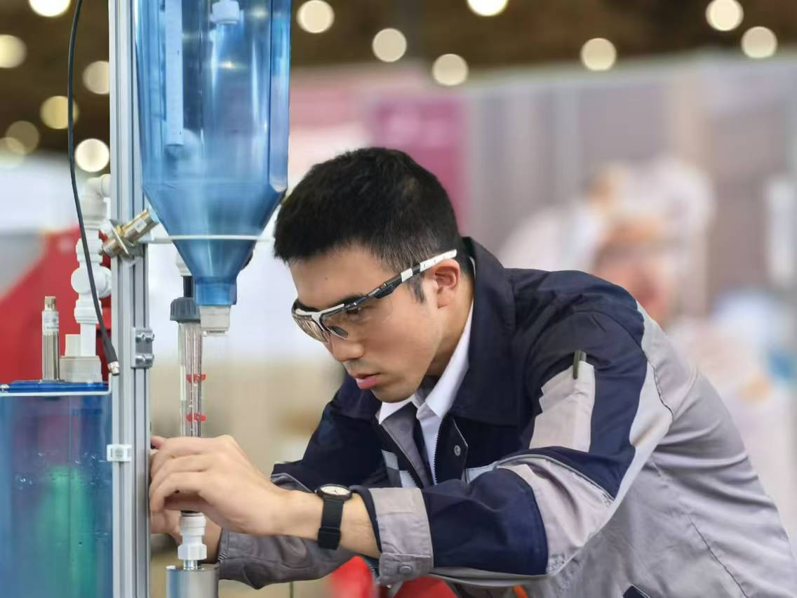 杨艺杰在第47届世界技能大赛水处理技术项目现场