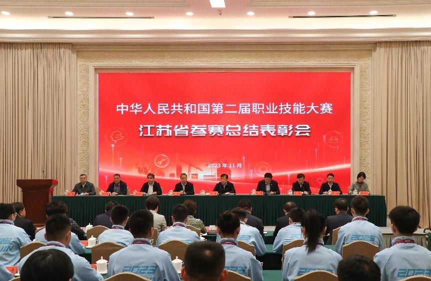11月7日,中华人民共和国第二届职业技能大赛江苏省参赛总结表彰会在南京西康宾馆隆重举行。我校水处理技术项目金牌选手杨艺杰受邀参加表彰大会并上台领奖。