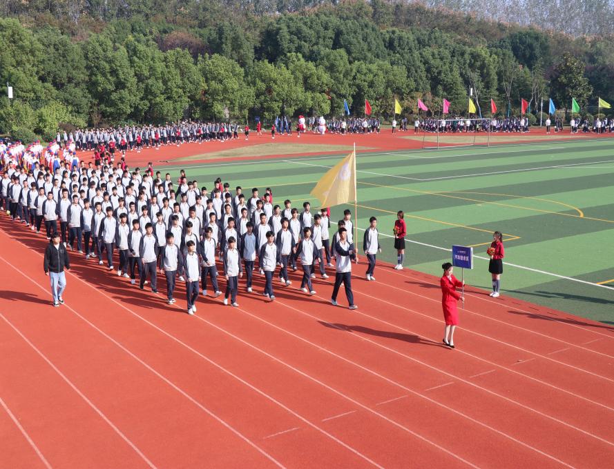 国旗队、校旗队、鲜花队、彩旗队组成的四个方队以及各系学生代表组成的方阵昂首挺胸,以整齐的步伐、响亮的口号、昂扬的斗志依次入场。