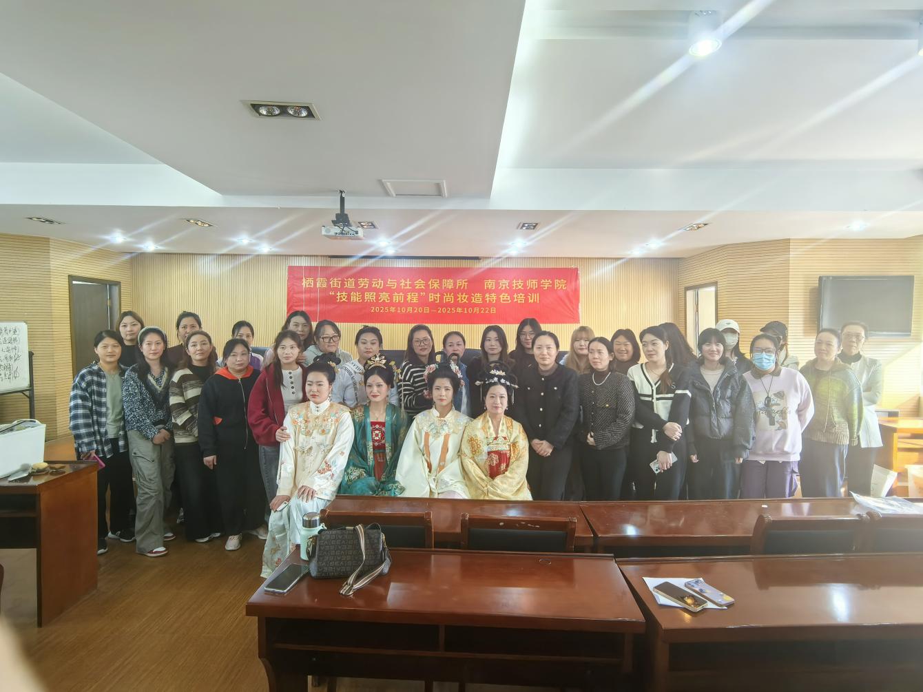 “技能照亮前程”时尚妆造特色培训班的成功举办,是学院深化政企校合作、推进高技能人才培养的生动实践。未来,学院将持续携手栖霞街道劳动与社会保障所,精准对接市场需求与群众就业创业诉求,开发更多实用性强、适配性高的技能培训课程,以优质技能培训为就业创业者赋能增效,为区域经济高质量发展注入动力。
